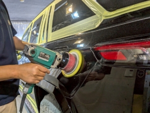 因みに入庫時に目立つ傷があったのでそれもしっかり除去させていただいております。ブース内でしっかり確認することでキズを発見します。磨き技術がないと除去することすらできないので専門店だと安心です。
