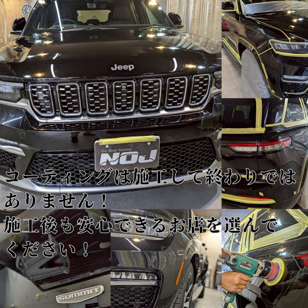 今回施工させて頂いた「グランドチェロキー」には完全硬化型ガラスコーティングにNOJロイヤルコーティングを施工しております。
