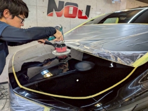 丁寧に養生をしたら専用のブース、照明を駆使しプロの厳しい眼で確認しながらキズ、汚れをキレイにしていきます!
