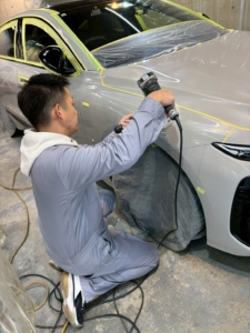 全体を見渡し塗装肌をしっかりと確認してそのお車に対して適切な研磨工程を入れます。