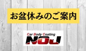 《お盆休みのご案内》 いつもご利用いただきありがとうございます! ガラスコーティング専門店NOJ東大阪本店です! 誠に勝手ながら当店では下記の期間を休業日とさせていただきます。 ★★★★お盆休業日★★★★ 2020年8月12日(水)〜2020年8月14日(金) ★★★... -