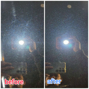 経年車・中古車にコーティングを施工する場合、そのままコーティングはまずあり得ないと考えるべきです。新車でもそのままコーティングをするべきではないので当然と言えます。そのまま塗って艶が出たとしてもその下にある深い傷やしつこい水アカはそのままです。経年による塗装のくすみもあります。しっかりとした下地処理が重要となりますので必然的に研磨作業が必要となります。